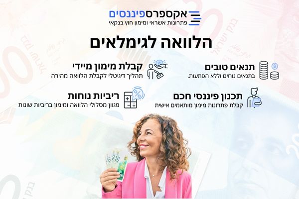 | החל מפריים + 4.5% (כ-10.5%) | כלל הגמלאים | עד 200,000 ₪ | עד 84 חודשים | הלוואה חוץ בנקאית |